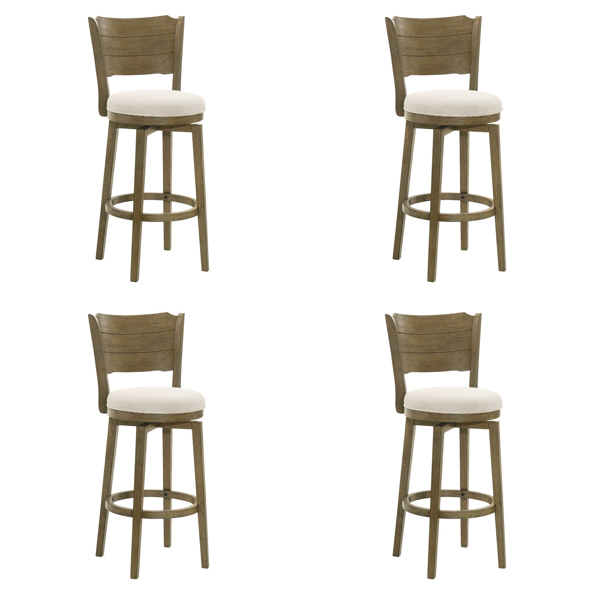 Winsley - Coastal Modern Swivel Wood Bar Height Kitchen Bar Stool (Set of 4) - Putty Brown Finish With White Boucle Fabric Upholstered Seat