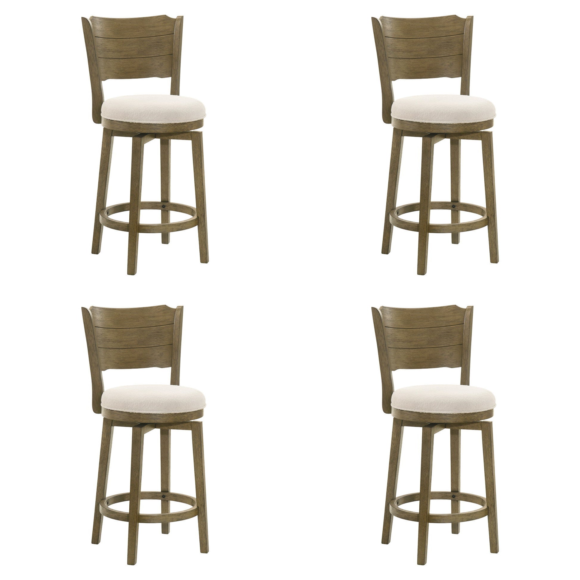 Winsley - Coastal Modern Swivel Wood Counter Height Kitchen Bar Stool (Set of 4) - Putty Brown Finish With White Boucle Fabric Upholstered Seat