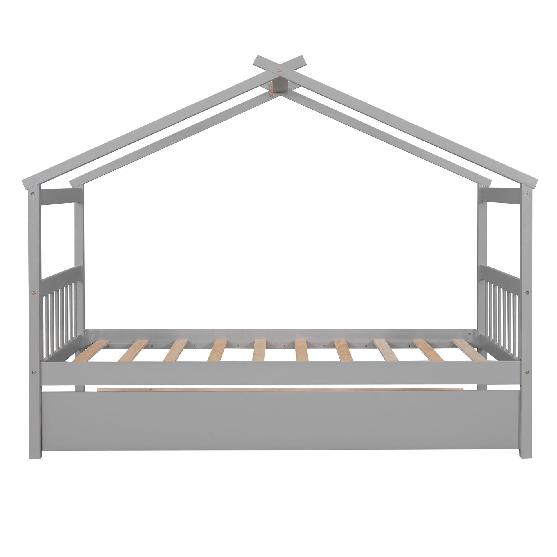 Twin Size House Bed With Twin Size Trundle - Walnut